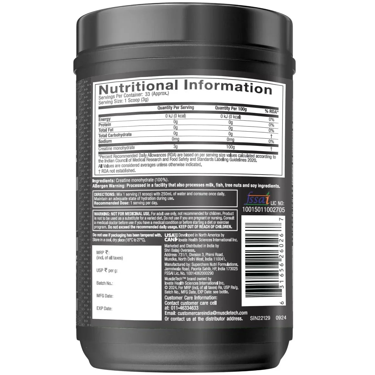 Creatine Monohydrate : 3 g