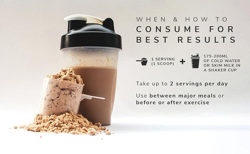 Mix 1 serving (1 scoop) in 200 mL of cold water or skim milk in a shaker cup. Use between major meals or before and after exercise. Take up to 2 servings per day. Read the entire label before use and follow directions provided. Recommended Dose : 2 servings per day