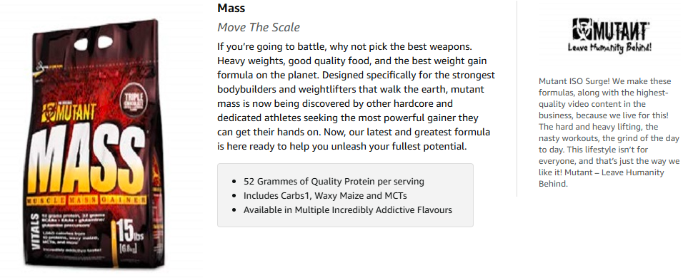 Push beyond limits and fuel your muscle-building journey with Mutant Mass the ultimate weight gainer designed for real results!