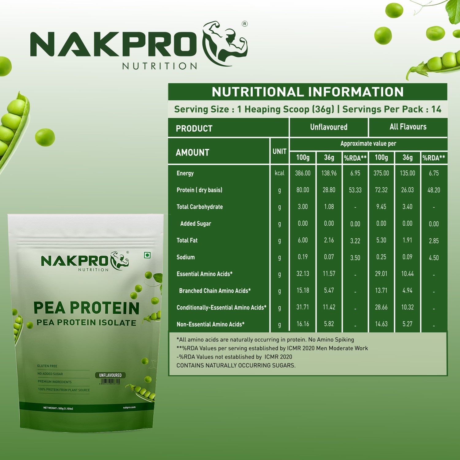 Each serving of Nakpro Pea Protein contains 26g Protein, 10.4g EAA, 4.94 BCAA of pure and natural protein powder comes straight from peas, allowing you to get the natural benefits without any artificial additives. Pea Protein, a protein vegan powder, is a complete source of protein, it contains all the essential amino acids your body needs to build muscle and Supports to Recovery and Build Lean Muscle. Pea protein powder is a high-quality source of protein that contains all the essential amino acids. It’s also gluten-free, soy-free and dairy-free, making it the perfect choice for anyone with dietary restrictions.