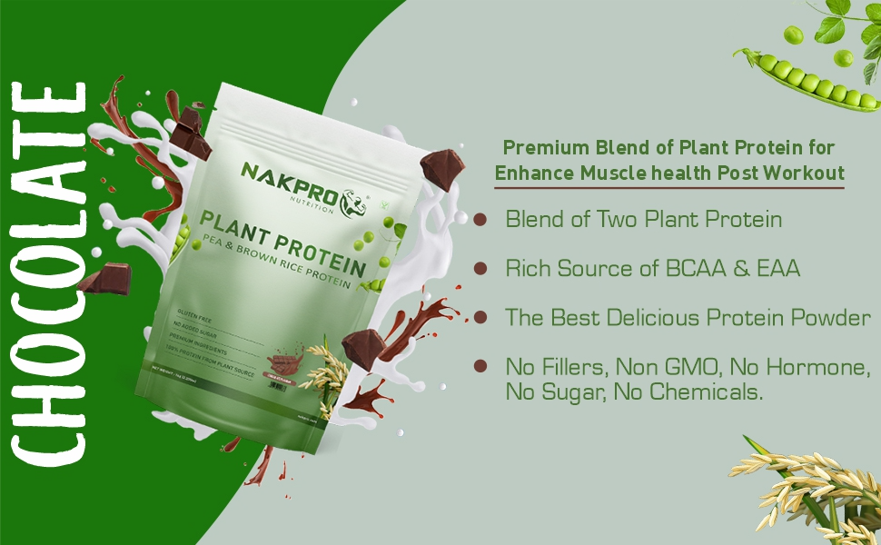 Nakpro Vegan Plant Protein Powder is Plant based protein with all essential amino acids. It is a Pea protein & Brown rice protein. It is completely Natural product and perfect lactose free protein powder. Nakpro Pea protein helps to maintain a clean diet. This plant protein shake helps in building muscle and support recovery. With a solid, well-balanced formulation and ingredients, Nakpro Plant Protein is suitable for athletes and fitness enthusiasts.