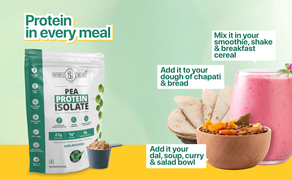 . Pure and Safe-Nature's Island Pea Protein Isolate is NON- GMO and completely pure and safe as it does not contain any gums, thickeners, preservatives and unwanted substances.