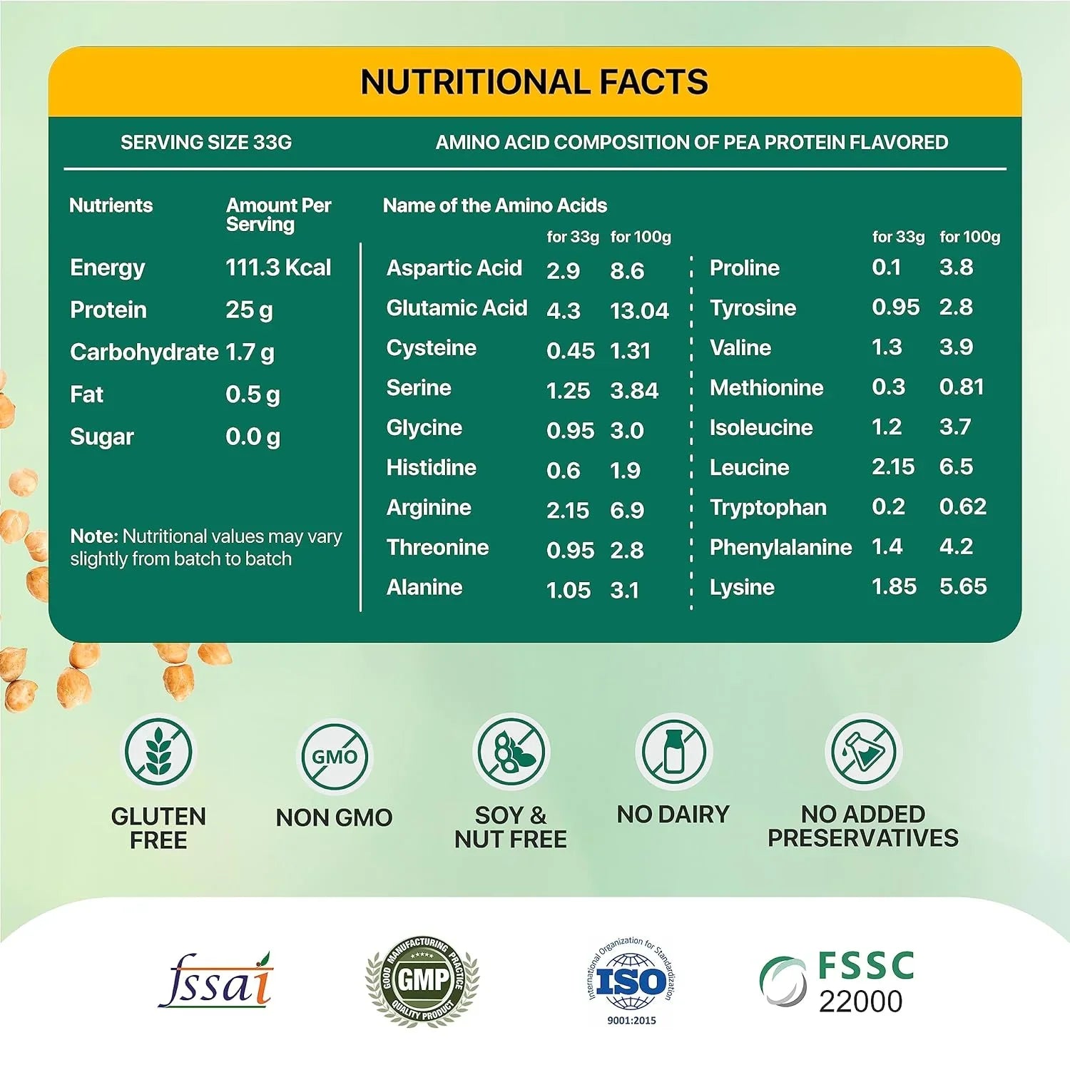 . Premium and 100% Vegan - Premium quality, Pure and Clean Pea Protein sourced from high quality yellow peas.