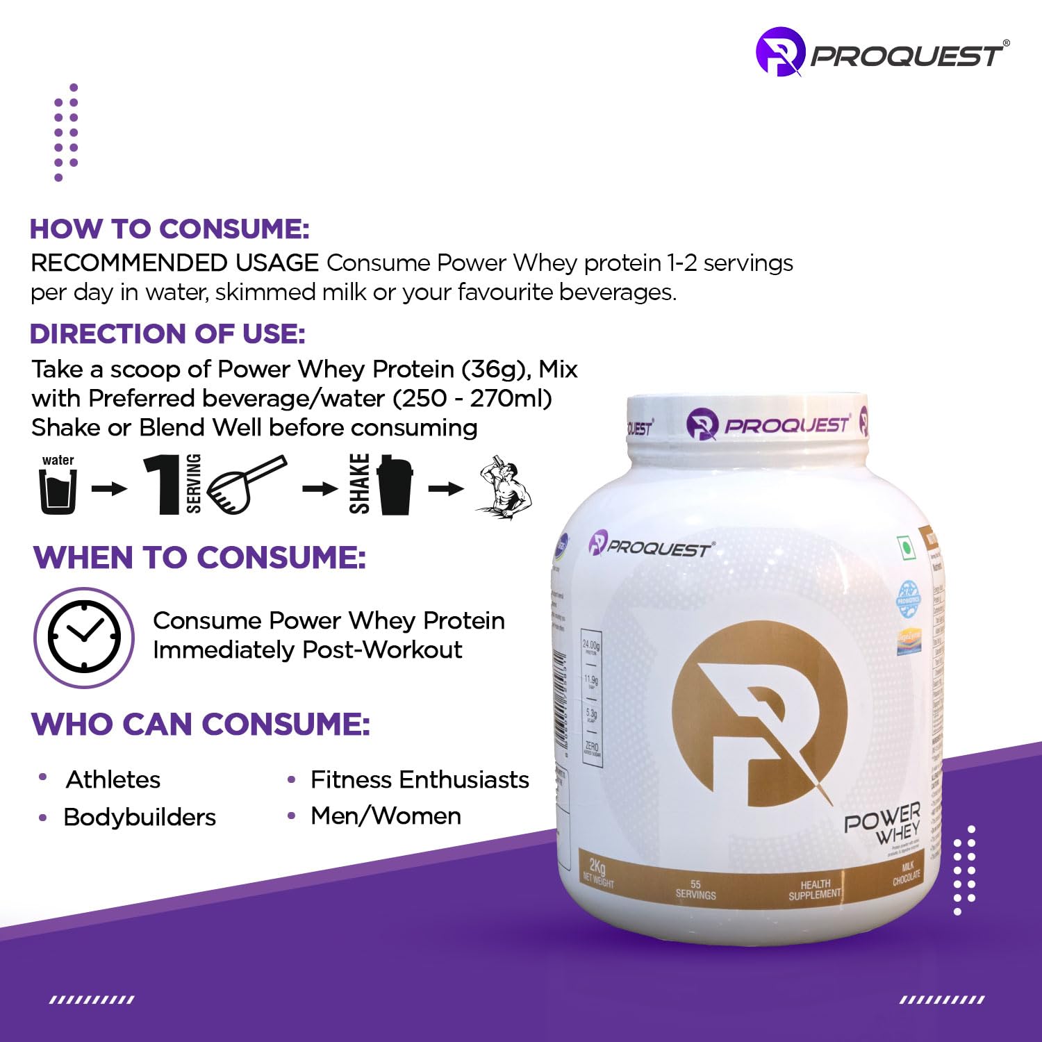 Proquest Whey Protein | 24G Protein Per Scoop | 5.3G Bcaa & 11.9G Eaa | Added Probiotics & Digezyme For Fast & Easy Digestion | 2 Kg