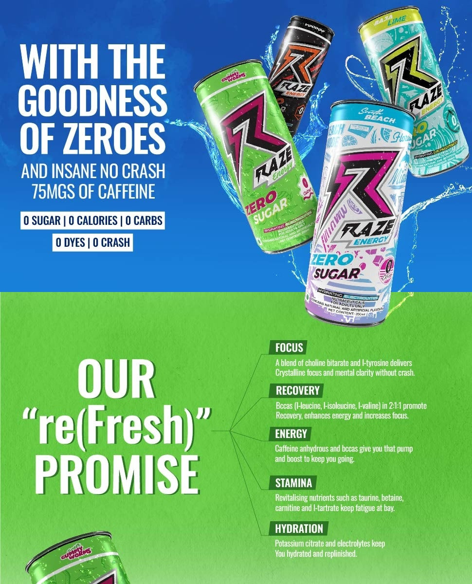 RAZE Energy Drink – Zero Sugar, Sustained Energy, Pure Performance Support