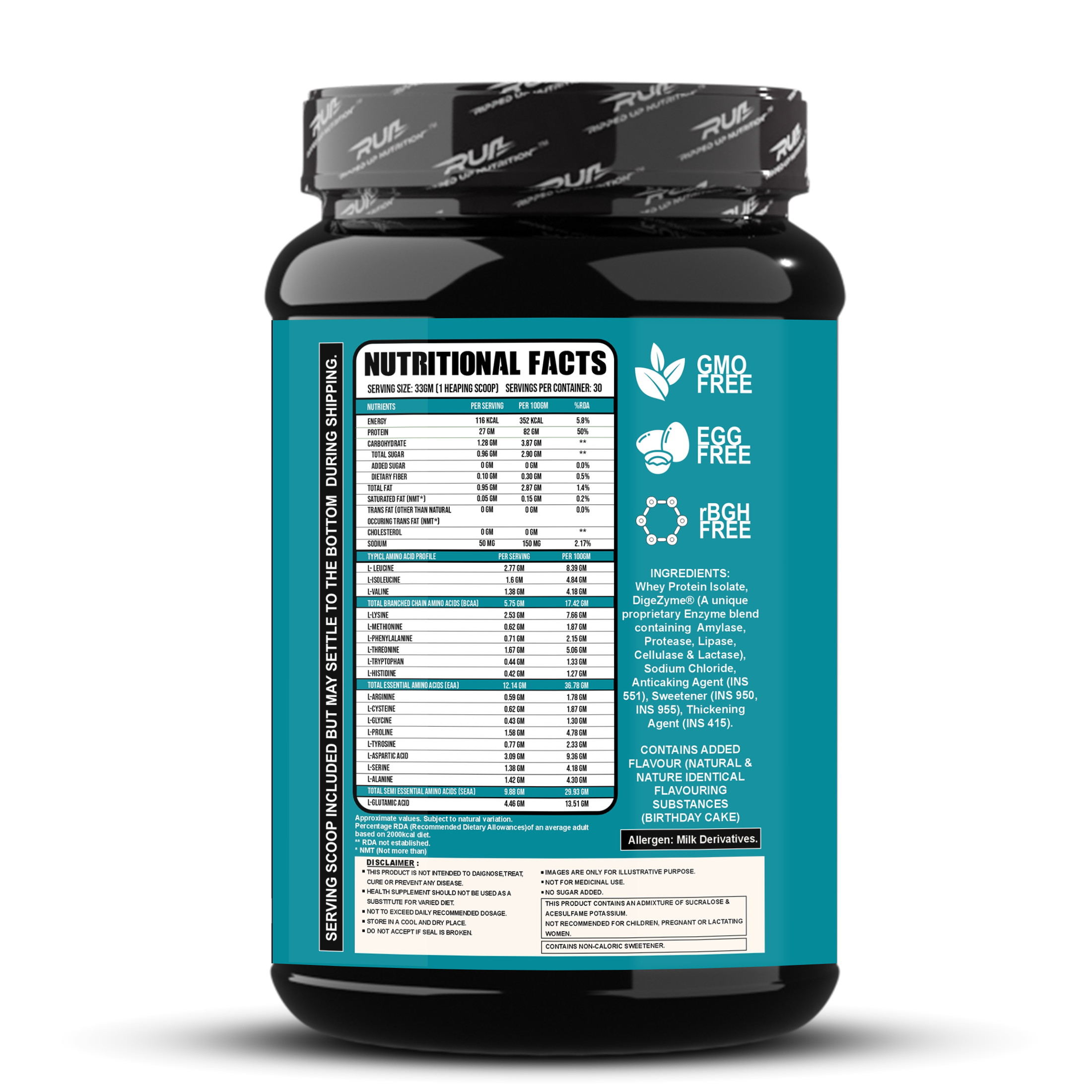 Ripped Up Nutrition 100% Whey Protein Isolate | 27g Protein, Low Carb & Fat | 1 Kg, 30 Servings
