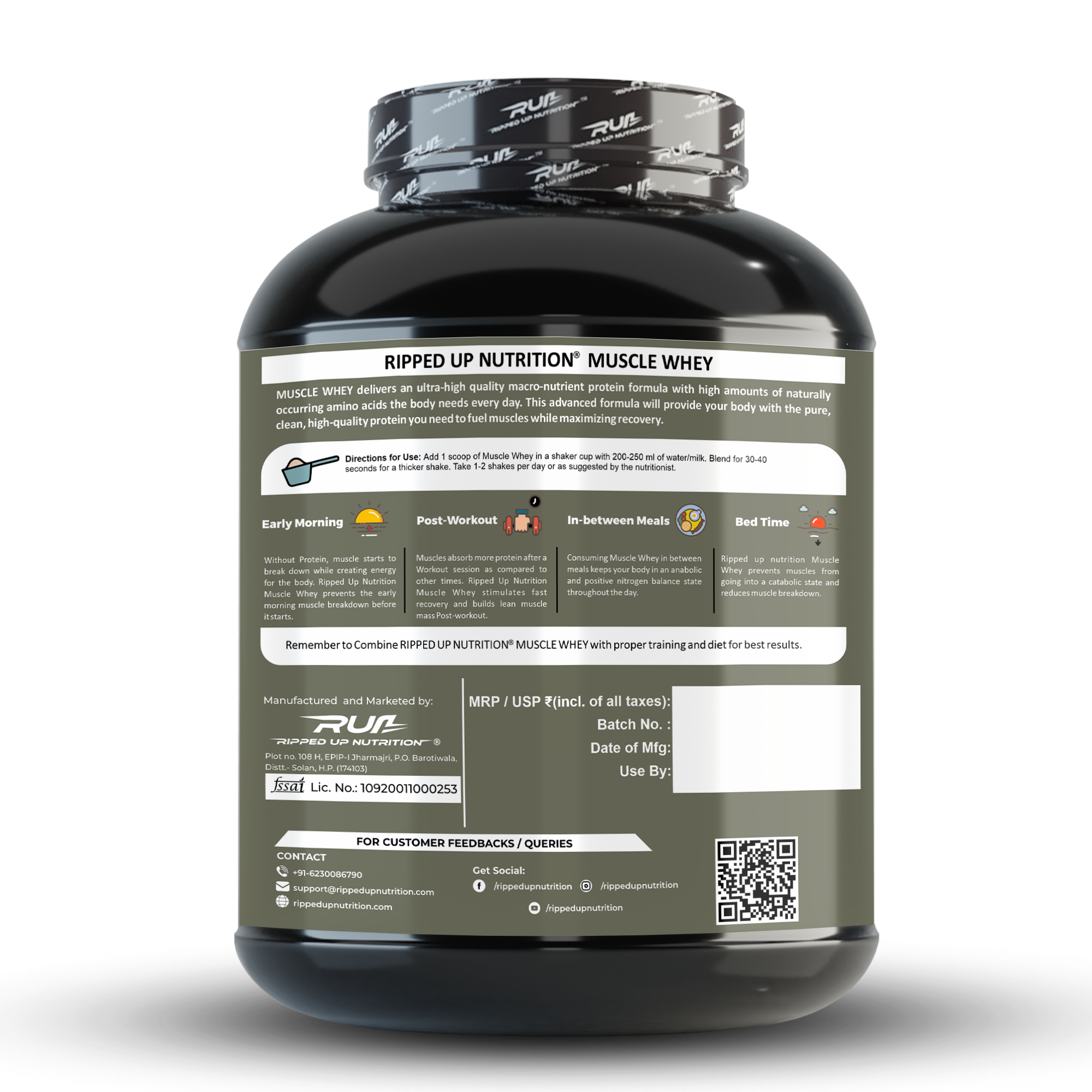 Ripped Up Nutrition Muscle Whey | 24g Protein, Low Carb Formula | 1.8 Kg, 50 Servings