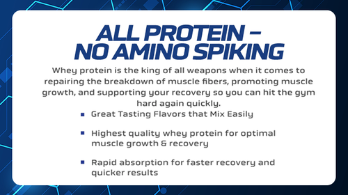 Perfect For : Athletes and fitness enthusiasts seeking a high-quality, fast-absorbing whey protein powder with delicious flavors that mixes easily to optimize muscle growth, accelerate recovery, and help them train harder and more consistently.