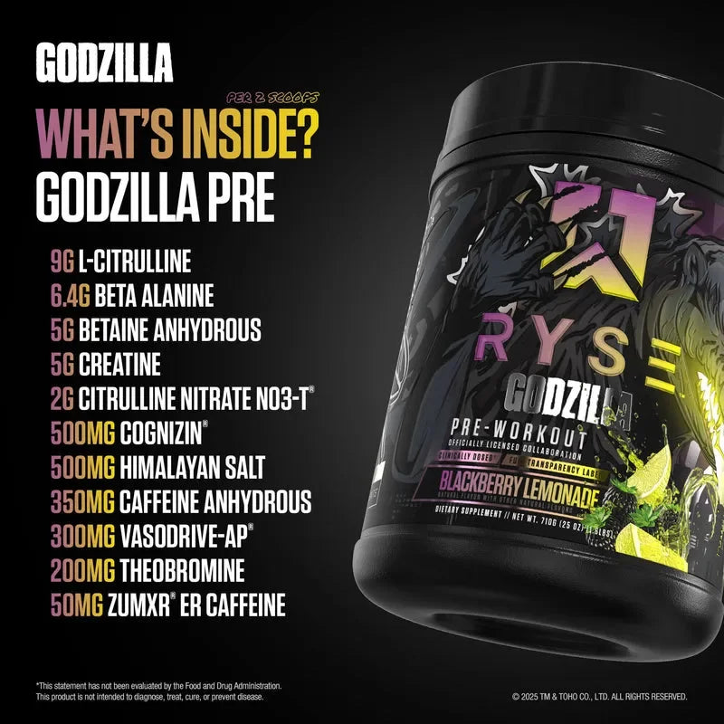 Ryse Godzilla Preworkout, 742g - 40 Servings - Black Berry Lemonade is backordered and will ship as soon as it is back in stock.