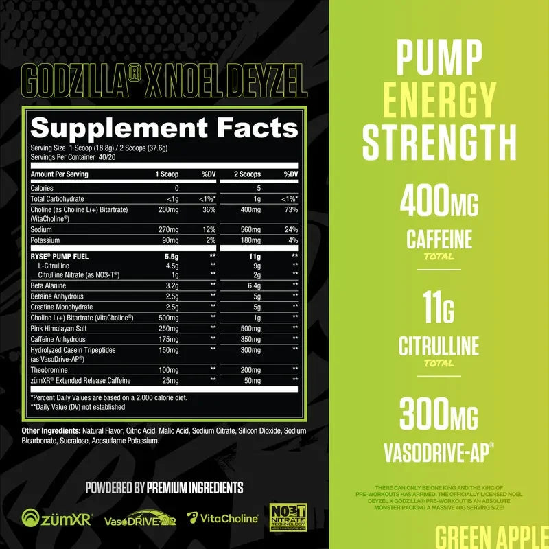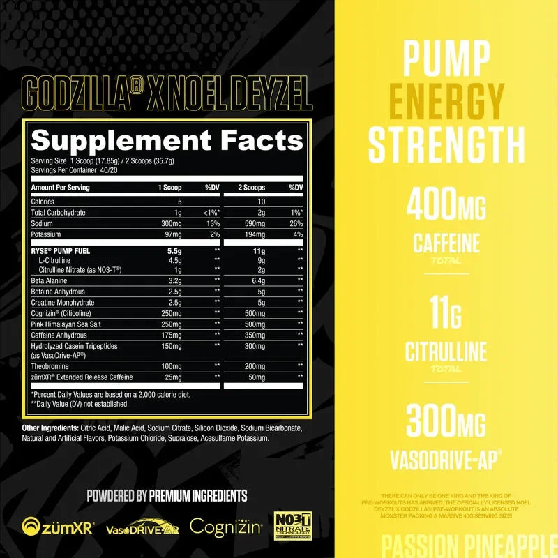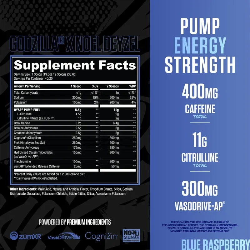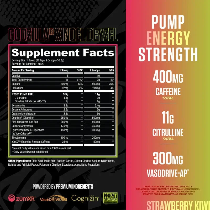 Unleash your inner monster with the Noel Deyzel x Godzilla® Pre-Workout, a 40g mega-dose powerhouse built for next-level pumps, tunnel vision focus, and untamed energy. Officially licensed and engineered for carnage, this pre sets a new standard in performance, intensity, and flavor.