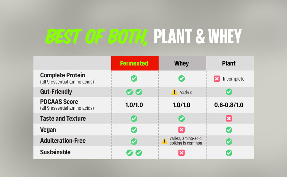 Created through a unique fermentation process with a PDCAAS score of 1.0, delivering all essential amino acids. Naturally contains beta‑glucans and prebiotics to support digestive wellness and efficient absorption.