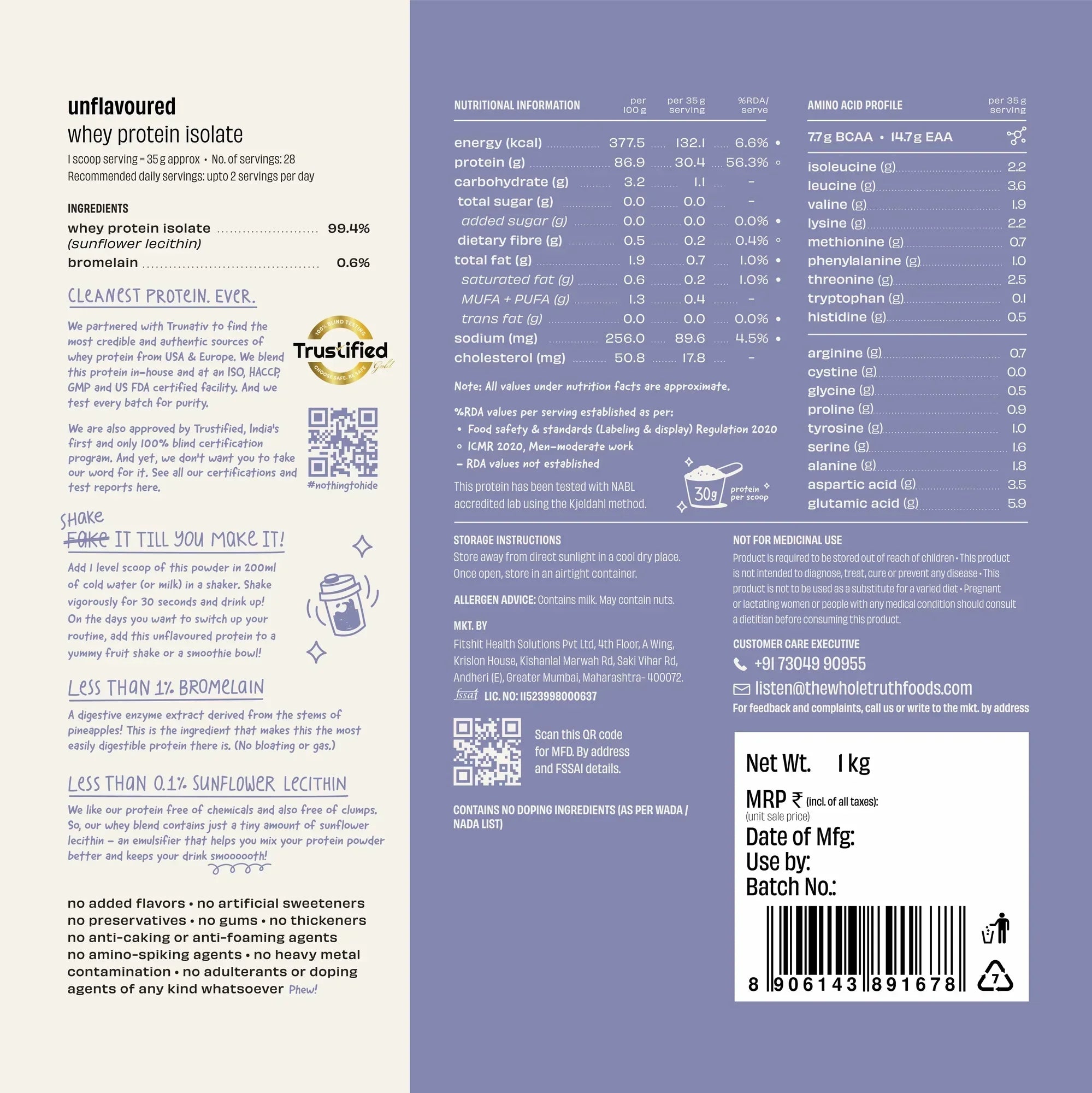 The Whole Truth 30g Whey Protein Isolate - 1kg (Pack of 2)