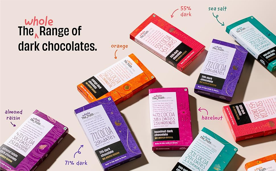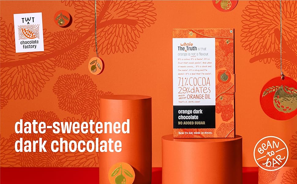 The Whole Truth 71% Dark Chocolate is a dark chocolate made with only real ingredients, rich and creamy with a deep, complex flavour. The best part? It's sweet! Sweetened with dates and no additional sugar, this is the best treat you can give yourself. The Whole Truth has taken your classic favourite and turned it into a gourmet experience. This dark chocolate is good enough to bring to the table and better than other dark chocolates. With the addition of fresh cocoa beans, this bar is sweetened only with dates, making it one of many healthier options for your next sweet treat. This dark chocolate is melt-in-your-mouth good. Each bite is rich and sweet, with a delicious taste of roasted cocoa beans and dates. Explore the whole range of delicious tasting Chocolates by The Whole Truth ranging from Orange flavoured dark chocolate to quinoa-flavoured crunchy milk chocolate.