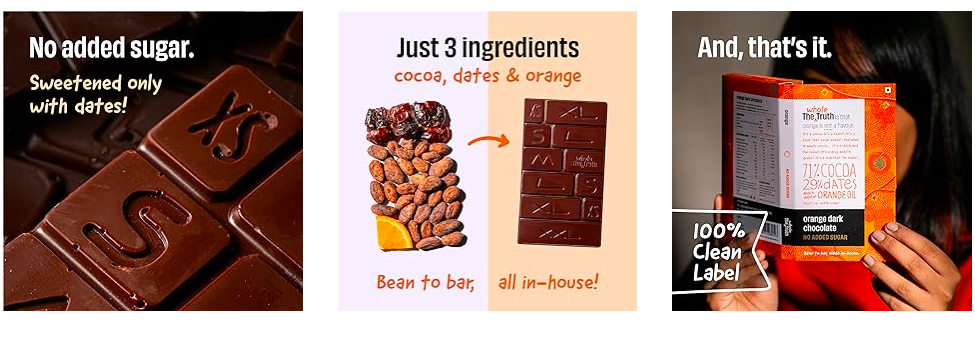This chocolate is sweetened with Dates, that are naturally sweet and contain natural fiber, whereas regular chocolates are either sweetened with harmful artificial sweeteners (that come with an advisory) or with refined sugar (which has very high glycemic index and has zero fiber).