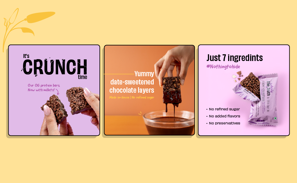 Peanut Millet Cocoa : 13g protein in yummy date chocolate is a treat. But that crunchy millet on top will wanna make you repeat and repeat and repeat…
