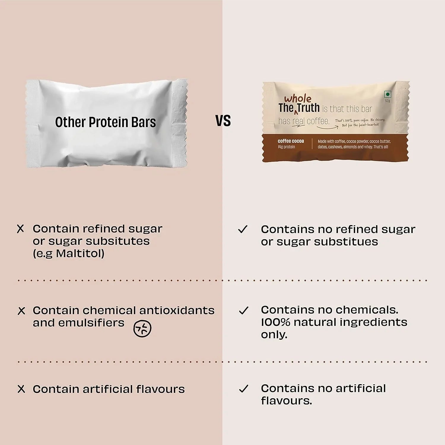 The Whole Truth - Protein Bars | Pack of 6 x 52g each | No Added Sugar | No Preservatives | No Artificial Sweeteners