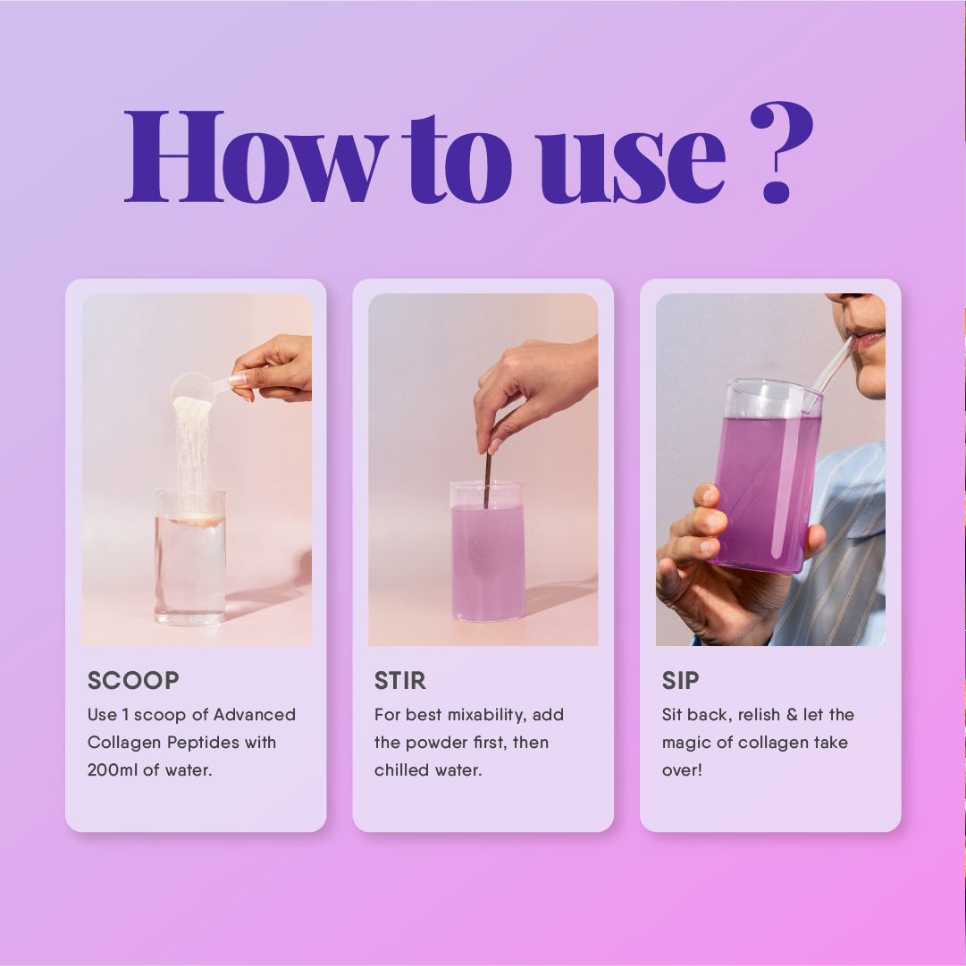Use 1 Scoop of Advanced collagen peptides with 200ml of Water