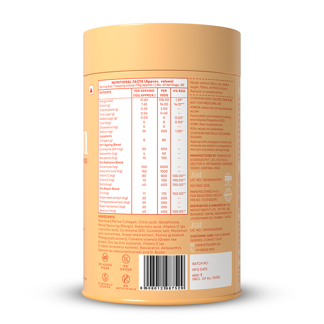 Hydrolysed Marine Collagen, Citric acid, Glutathione