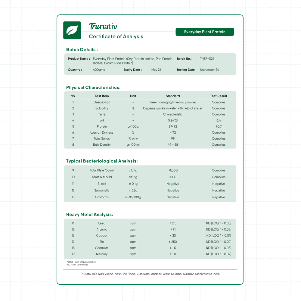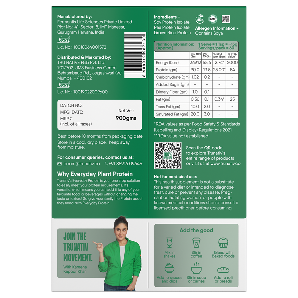 Everyday Protein is an organic, plant-based protein blend featuring Soy, Pea, and Brown Rice Protein. Free from chemicals, fillers, and sugars, it's easy to digest with added enzymes, making it gentle on the stomach. Perfect for vegetarians, it addresses protein deficiencies without the hassle of cooking. This versatile powder is heat-stable, allowing seamless incorporation into hot dishes like rotis and dosas. Suitable for all ages, it supports weight management and is ideal for those with dietary restrictions. Simply mix a tablespoon into your meals or beverages for a quick, nutritious protein boost.