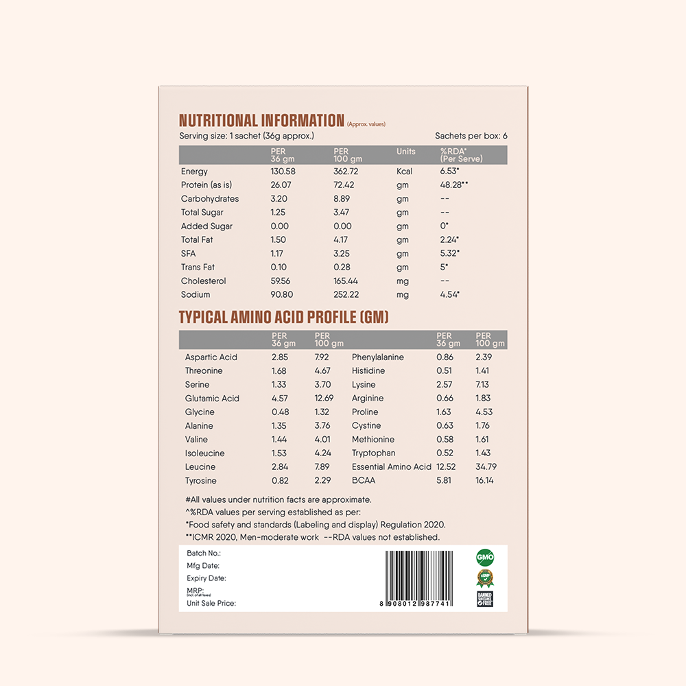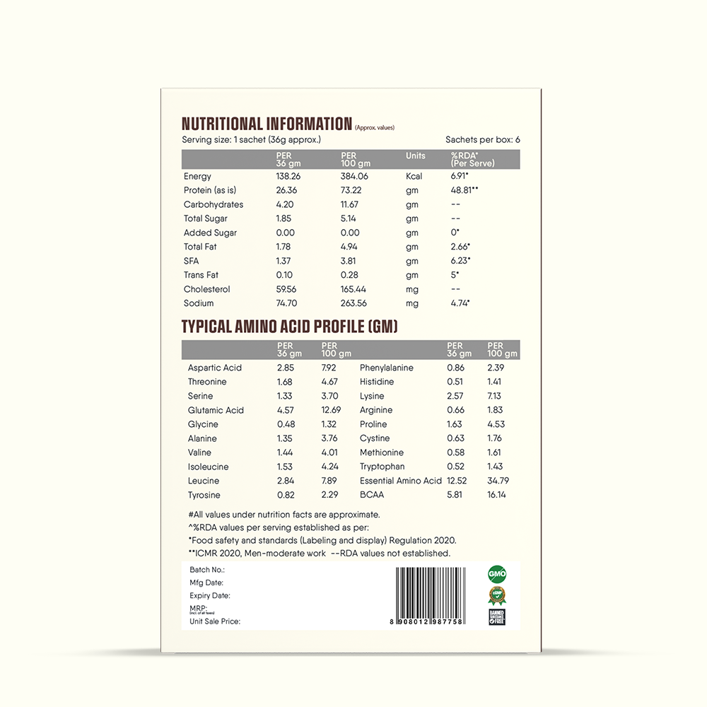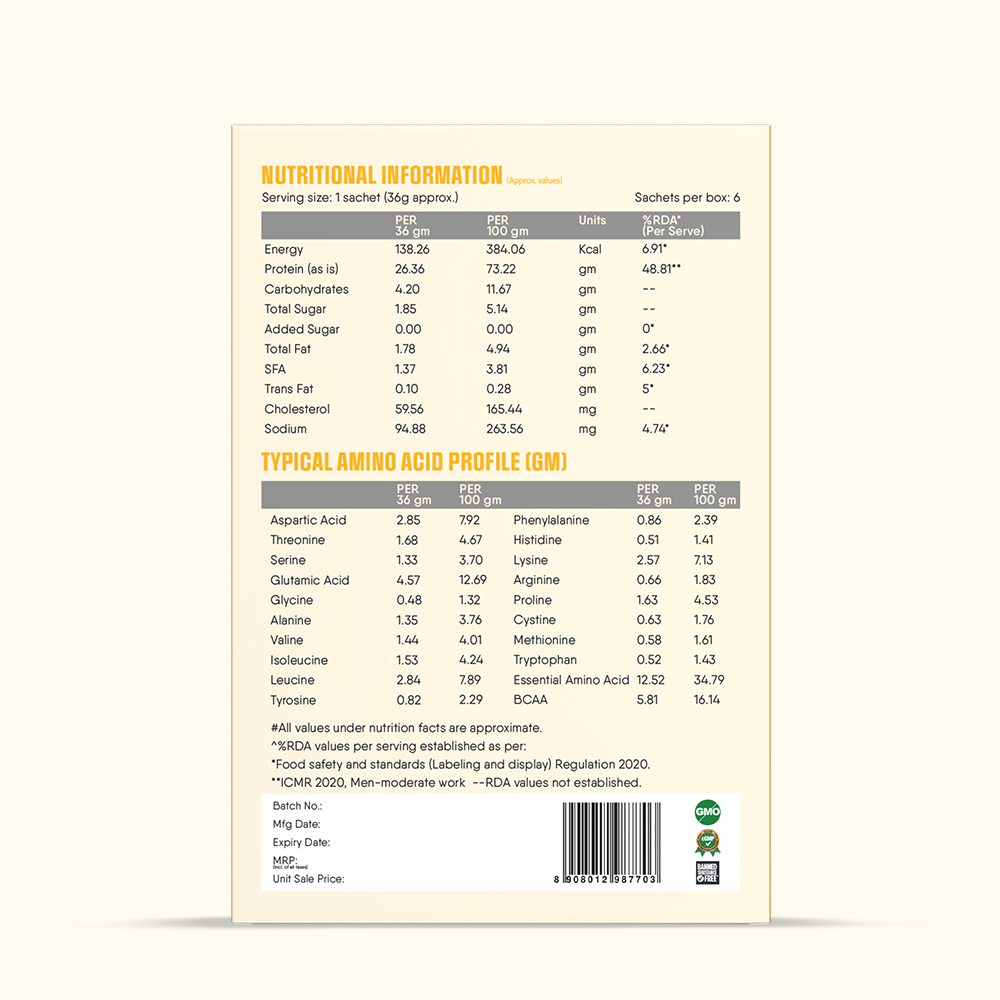 Rediscover the luxurious flavors of tradition with TruNativ Pro Blend Kesar Badam Whey Protein Powder. Packed with the goodness of saffron and almonds, this protein supplement offers 26g of grass-fed whey protein and 6g of BCAAs per serving, ensuring exceptional recovery and performance. TruNativ’s nutraceutical-grade quality ensures a clean, sugar-free, and vegetarian-friendly solution for your health and fitness needs.