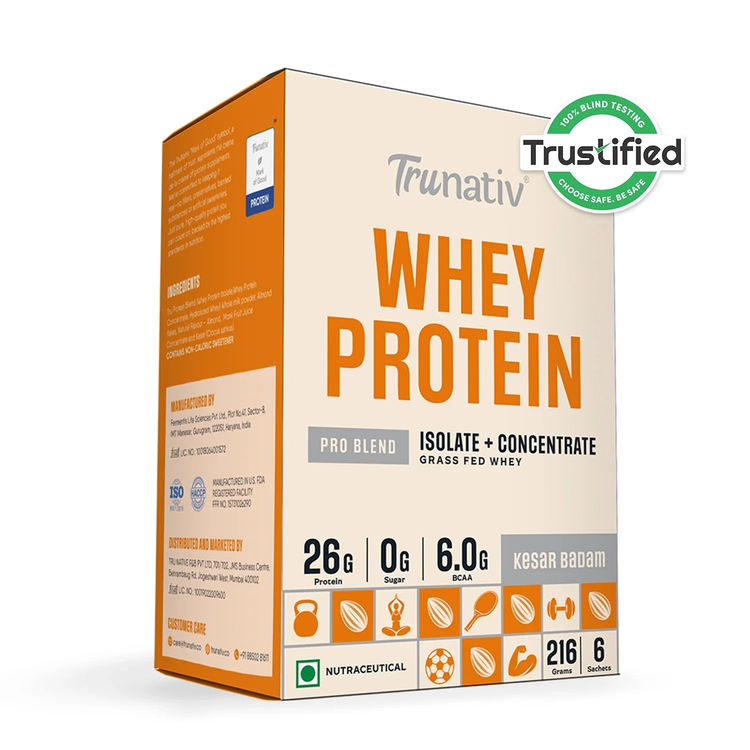 TruNativ Pro Blend Whey Protein, 26g Protein, 216g - Kesar Badam is backordered and will ship as soon as it is back in stock.