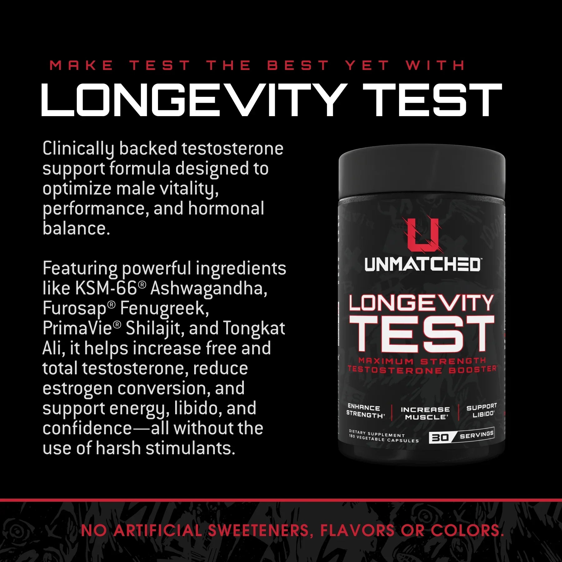 Unmatched Longevity Test, 180 Capsules - Unflavoured is backordered and will ship as soon as it is back in stock.