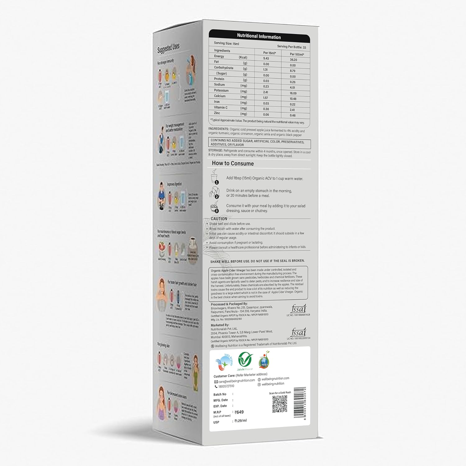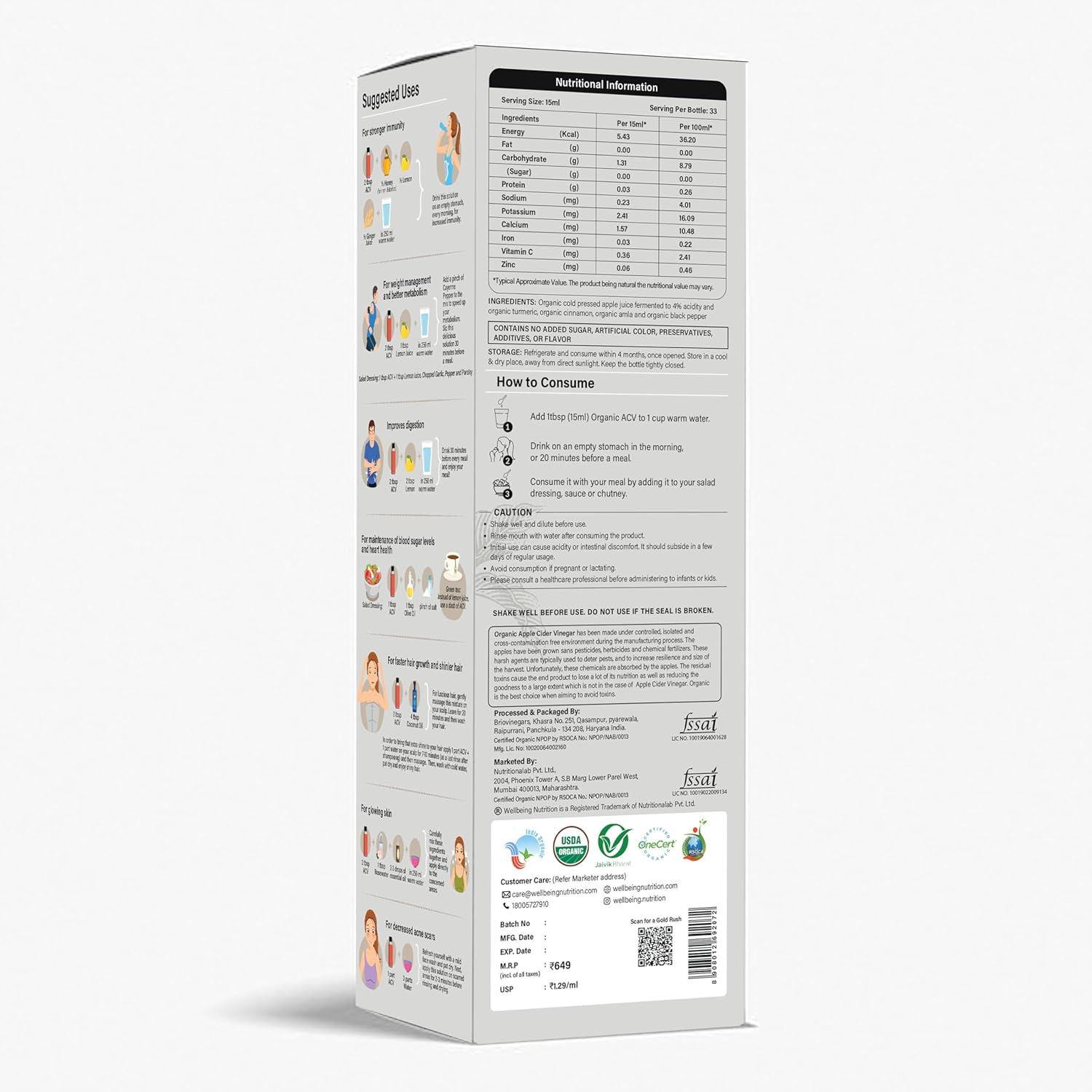 Wellbeing Nutrition Apple Cider Vinegar with Turmeric, Amla, Cinnamon and Black Pepper | Raw Unfiltered with 2X The Mother | Supports Weight Management, Boost Immunity & Detox, Skin Health | 500ml - Unflavoured is backordered and will ship as soon as it is back in stock.
