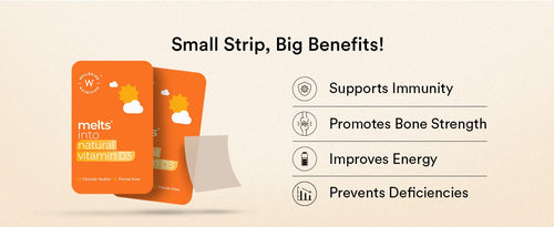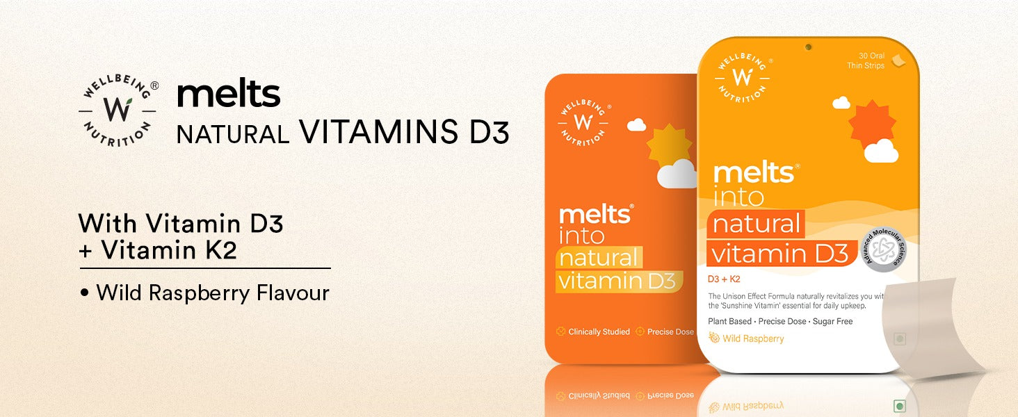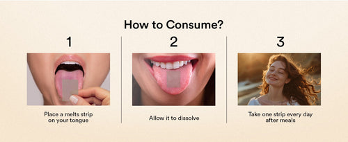Place a melts Natural Vitamin D3 strip on your tongue and allow it to dissolve. Take one strip post breakfast.