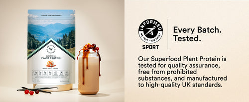 Her Superfood Plant Protein combines premium-quality, plant-based ingredients like Pea Protein Isolate, Brown Rice Protein Isolate, Chia Seed Protein, Natural Superfoods, Berries, DigeZyme, and more to support women' health and wellness. Delivering 18 grams of clean protein with a complete profile of all the essential amino acids, this plant-based protein powder has been scientifically formulated to take any active women's fitness journey to new heights.