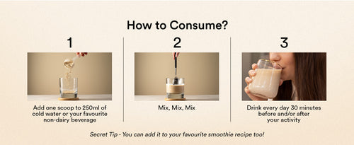 Add 1 level scoop (30g) to 250-300ml of cold water or your favorite non-dairy beverage, such as almond milk, or to your favorite smoothie recipe.