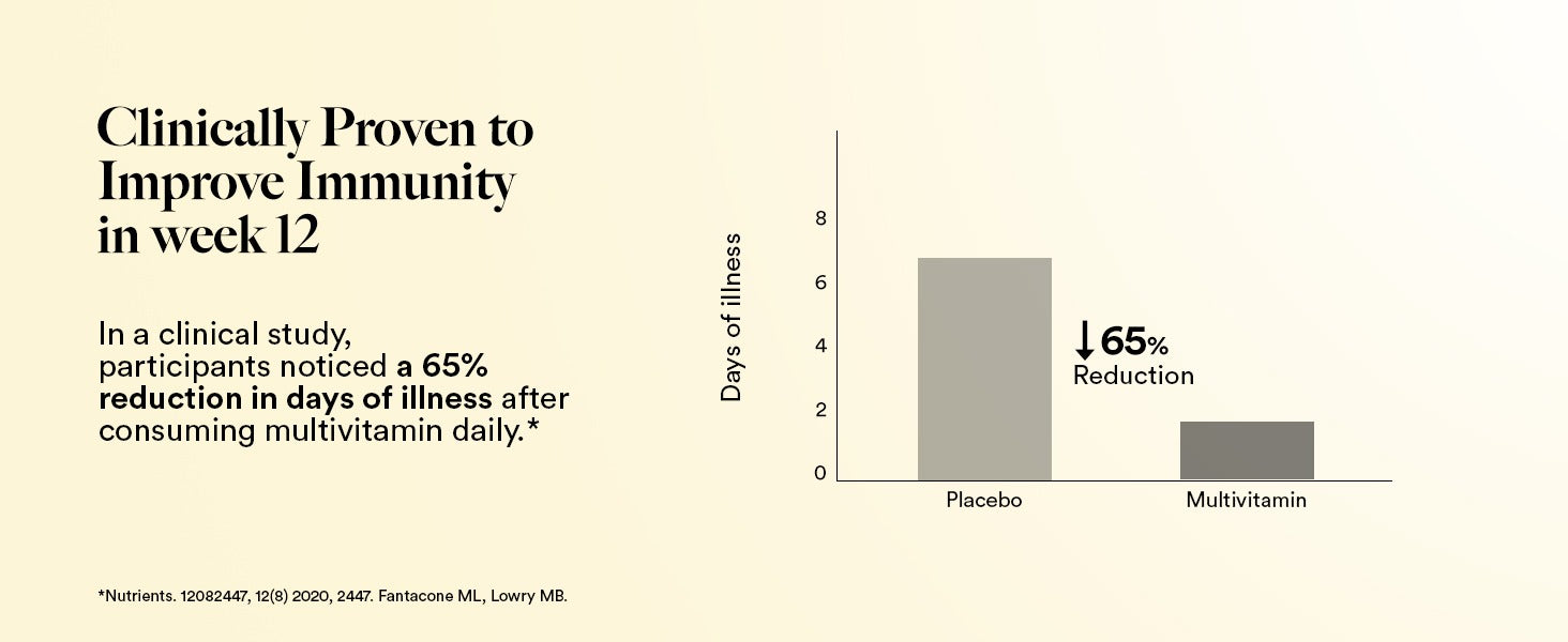 Clinically Proven Results Shown to reduce illness by 65%, improve PMS symptoms by 31%, and decrease skin inflammation by 41% over 12 weeks