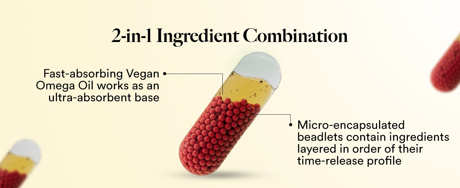 8-Hour Time-Release Delivery Microbeadlets suspended in oil ensure steady nutrient release for all-day wellness and endurance