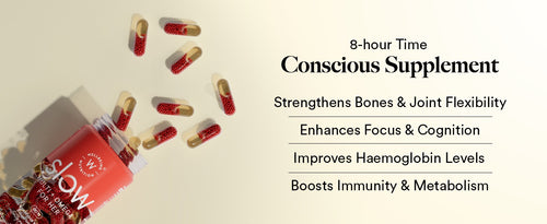 SLOW Multi + Omega for Her is a next-generation multivitamin designed to meet the unique wellness needs of women. Featuring a powerful blend of 22 essential nutrients, vegan DHA algal oil, and clinically validated antioxidants, this formula supports energy, immunity, hormonal balance, and skin & hair health all delivered through 8-hour time-release microbeadlet-in-oil technology for sustained nourishment.