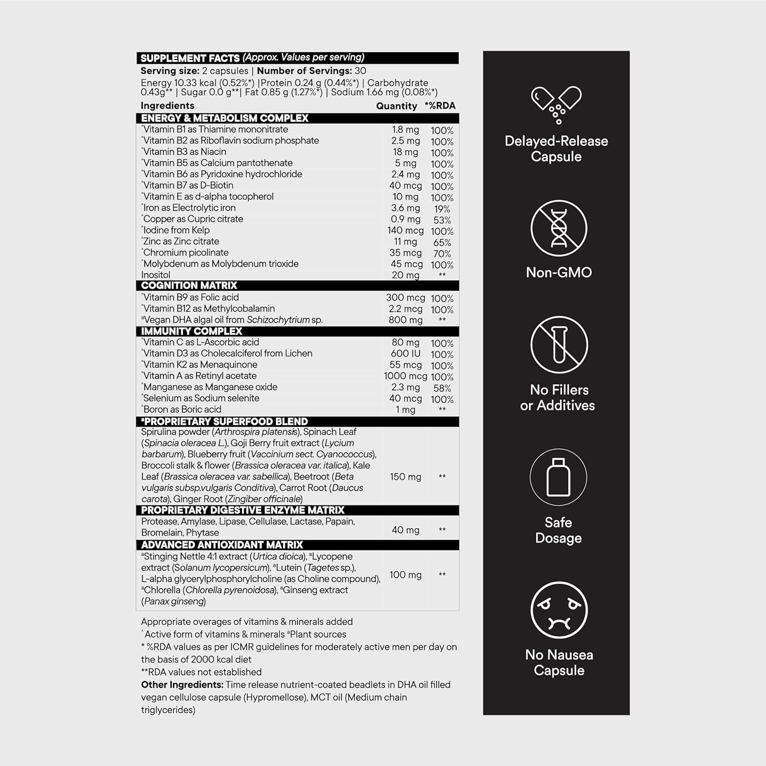 Wellbeing Nutrition Slow Multi+Omega for HIm | Stamina, Metabolism, Bones, Immunity, Digestion | 60 Veg Capsules - Unflavoured is backordered and will ship as soon as it is back in stock.