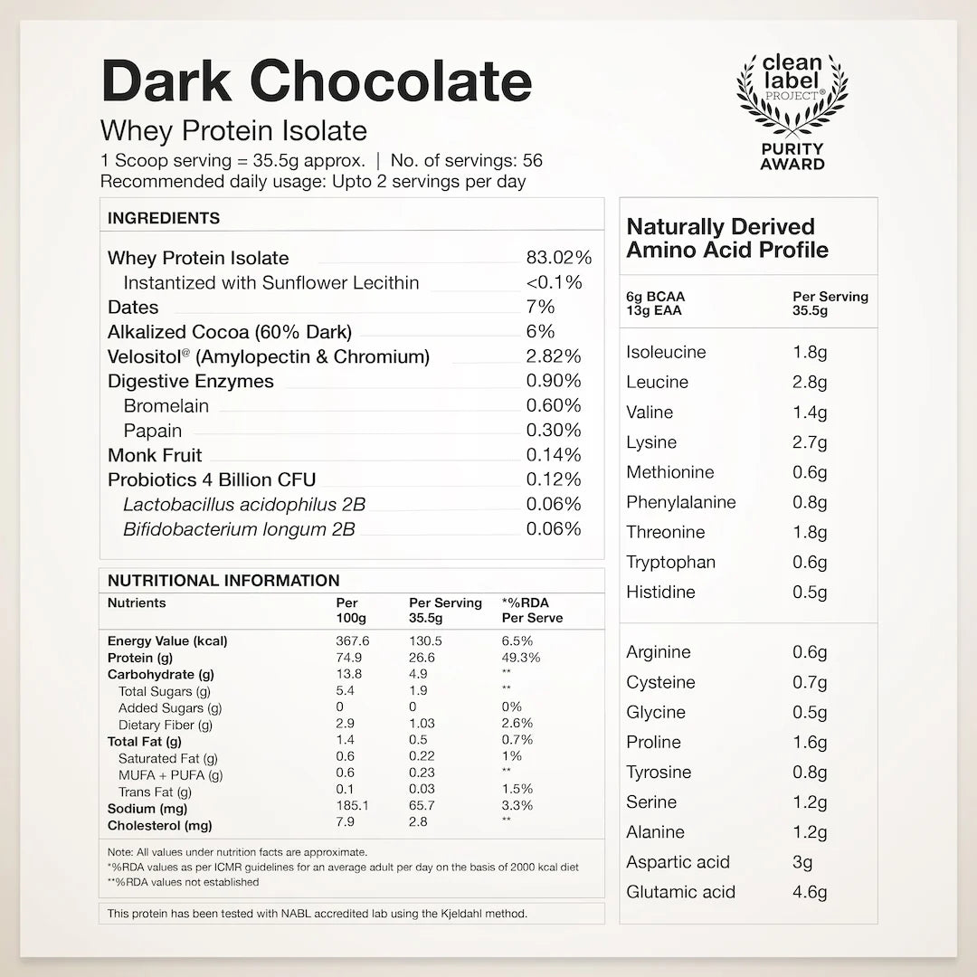 Wellbeing Nutrition Whey Protein Isolate 26g | 4B CFU Probiotics | 2 Kg - Dark Chocolate is backordered and will ship as soon as it is back in stock.