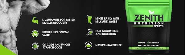 WHEY PROTEIN RESTORES ANABOLIC BALANCE : Zenith Sports Whey Protein with the distinguished blend, with the highest PDCAA score of 1 uses Whey Isolate, as the chief source of protein to spike the muscle protein synthesis for longer.
