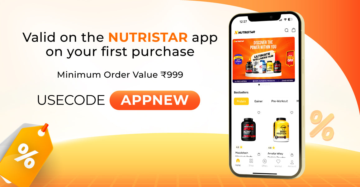 nutristar image Get Extra 5% Off Only On Nutristar Appnutristar image Trust of 3.5 Lac + Usersnutristar image Over 2 Lakh+ Downloadsnutristar image 4.5+ Customer Ratings