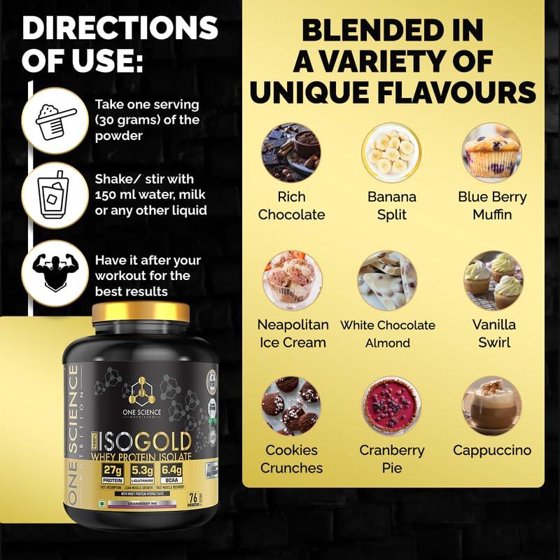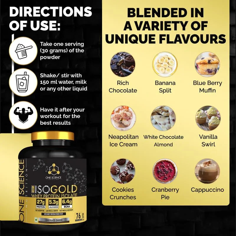 You should take 30 grams of OSN ISO Gold Protein with 300 ml of water, milk or any other liquid after your workout. As it gets digested by the body fairly quickly and thus helps you to recover instantly. It is also available in different palatable flavours to satisfy your taste buds while keeping you robust and healthy.